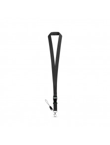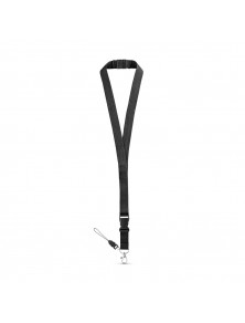 Polyesterová šnúrka s kovovou karabínou, odnímateľnou prackou, popruhom na mobilný telefón a bezpečnostným zámkom