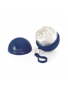Nepremokavé pončo dodávané v obale v tvare gule, s príveskom na kľúče a karabínou