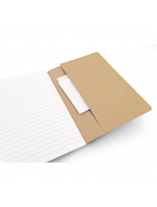 Poznámkový blok A5 s kartónovými doskami a 80 linajkovanými stranami z recyklovaného papiera s vnútornou kapsou